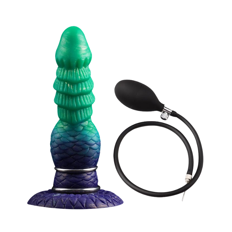 Step into the unknown with Green-Zaurus, the inflatable fantasy knot dildo that blurs the line between imagination and ecstasy. Its exclusive green-to-purple gradient shimmers like a cosmic aurora, while its soft, body-safe silicone texture delivers a lifelike, velvety touch that adapts to your every move.